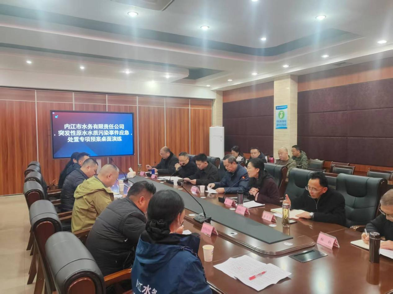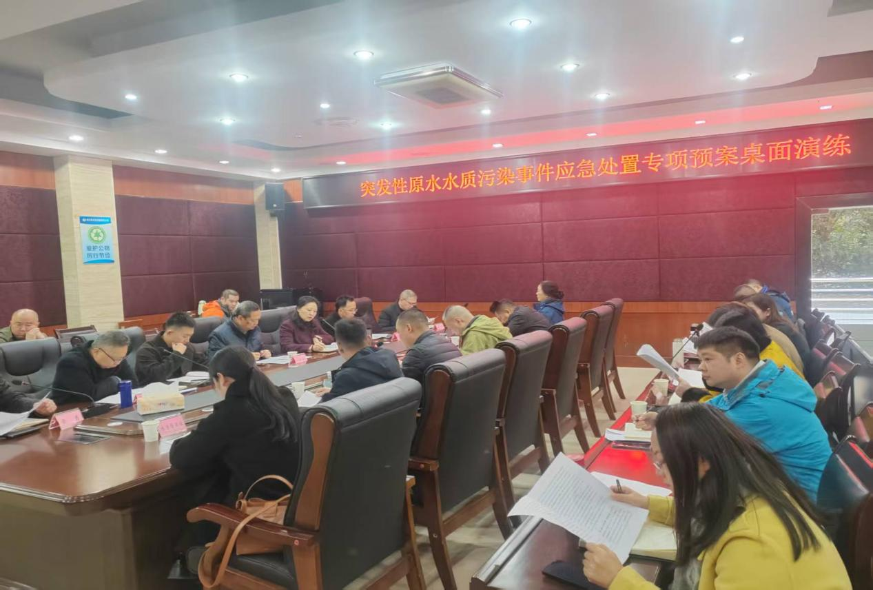 为提升公司应对突发性原水水质污染事件的处置能力,深刻吸取杭州余杭自来水异味事件的教训,11月18日,市水务公司开展了突发性原水水质污染应急处置桌面演练。市住建局四级调研员吴志刚、公用事业科科长陈亮亲临现场进行指导。市水务公司党委书记、董事长、总经理李涛等公司班子成员以及公司相关部门人员参与了此次演练。