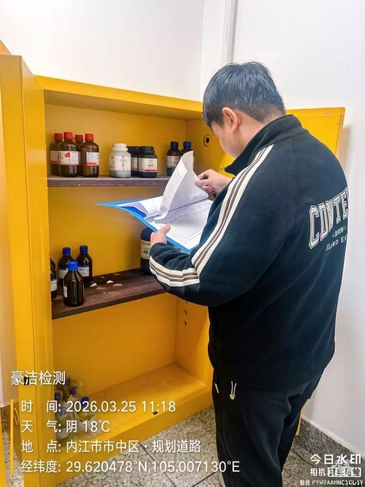 3月25日上午,内江市公安局经开区分局对豪洁检测公司开展了易制毒化学品专项检查。经过全面且细致的现场核查与资料审阅,公司各项管理工作均符合相关规范要求,顺利通过此次专项检查。